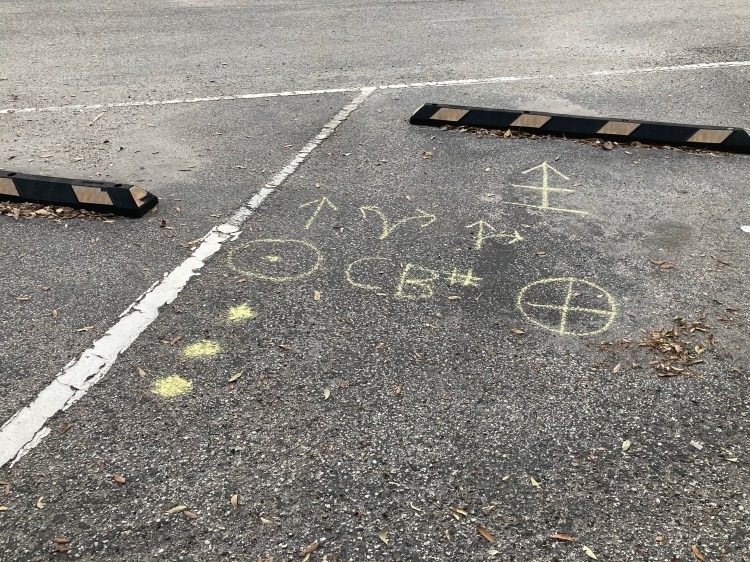 It was overwhelming at first. I had no idea what all the chalk markings meant, despite them being explained before we started out. There was mention of “plops” and “whichy ways” and “boob checks” and then, with a flashlight in hand, the hash started.
