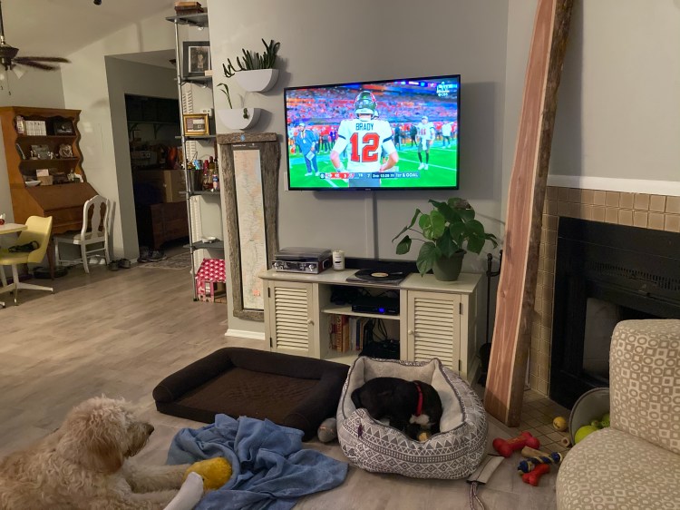 Despite us all living in the Tampa area, none of us are die-hard Bucs fans. The Superbowl was on, but it wasn’t the main focus. We laughed at the odd commercials we saw, criticized the half-time show and compared it to ones from years past, and just kept tabs on the score of the game. The big entertainment of the evening was watching the dogs interact with each other.